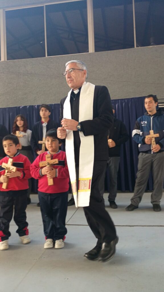 La bendición de este importante símbolo cristiano fue realizada por el Padre Marcelo Jara, quien instó a los estudiantes a cuidar y respetar la cruz y realizar la oración de la mañana cada día.