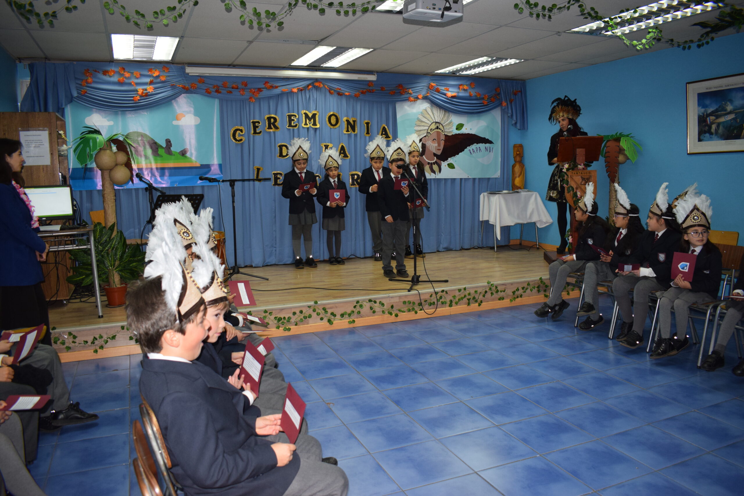 Los días jueves 18 y viernes 19 de julio , se realizó la Ceremonia de Lectura, actividad en la cual se invitó a los padres y apoderados a presenciar los avances lectores de sus hijos, el auditorio se transformó en un avión, y los estudiantes junto a sus profesoras, se convirtieron en tripulación y pasajeros de un vuelo especial con destino a Rapa Nui. En este contexto, los niños mostraron a sus familias sus logros en la lectura, destacando por su entusiasmo y dedicación, leyendo entretenidos textos.